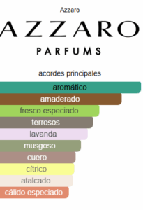 Azzaro pour Homme de Azzaro es una fragancia de la familia olfativa Aromática Fougère para Hombres. Azzaro pour Homme se lanzó en 1978. Azzaro pour Homme fue creada por Gerard Anthony y Richard Wirtz. Las Notas de Salida son lavanda, limón (lima ácida), alcaravea, albahaca, bergamota, esclarea, iris y anís estrellado; las Notas de Corazón son vetiver, sándalo, pachulí, cedro, bayas de enebro y cardamomo; las Notas de Fondo son musgo de roble, cuero, ámbar, almizcle y haba tonka.