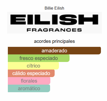 Billie Eilish No.2 es una fragancia de la familia olfativa Gourmand Floral para Mujeres. Lanzada en 2022. Las Notas de Salida son frambuesa y pimienta rosa; las Notas de Corazón son jazmín, rosa y orquídea; las Notas de Fondo son vainilla, sándalo y ámbar.
