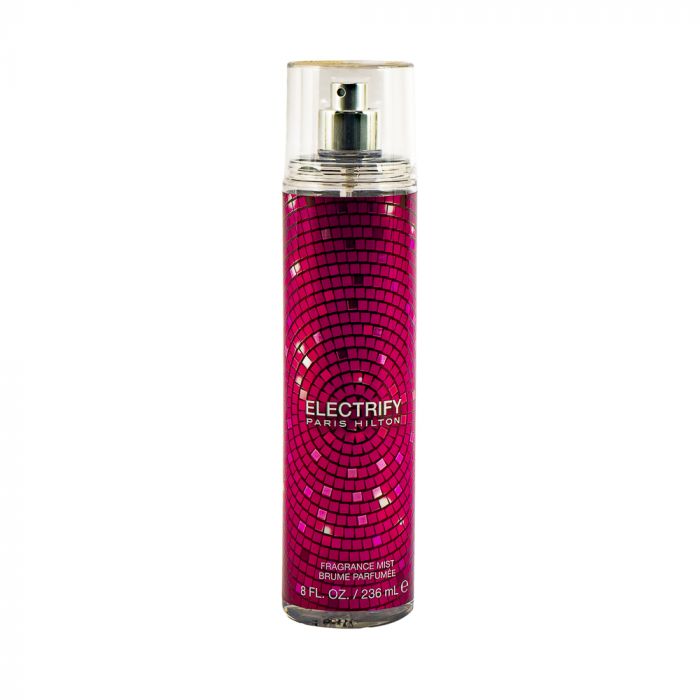 Paris Hilton Electrify es una fragancia de la familia olfativa Floral Frutal para Mujeres. Las Notas de Salida son grosella negra, mandarina y bergamota; las Notas de Corazón son jazmín, lirio de los valles y rosa; las Notas de Fondo son almizcle, sándalo y vainilla.