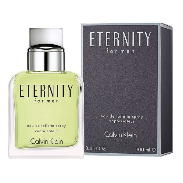 Calvin Klein Eternity for Men es una fragancia de la familia olfativa Aromática Fresca para Hombres. Lanzada en 1988. Las Notas de Salida son bergamota, mandarina y limón; las Notas de Corazón son jazmín, salvia y albahaca; las Notas de Fondo son cedro, almizcle y musgo de roble.