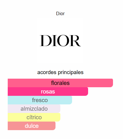 La frescura de un ramo de flores recién cortadas. Una fragancia ligera y juguetona que combina peonía, rosa y jazmín. Género: Mujeres. Año de lanzamiento: 2014. Notas de Salida: mandarina, cassis. Notas de Corazón: peonía, rosa, jazmín. Notas de Fondo: almizcle, madera de cedro.