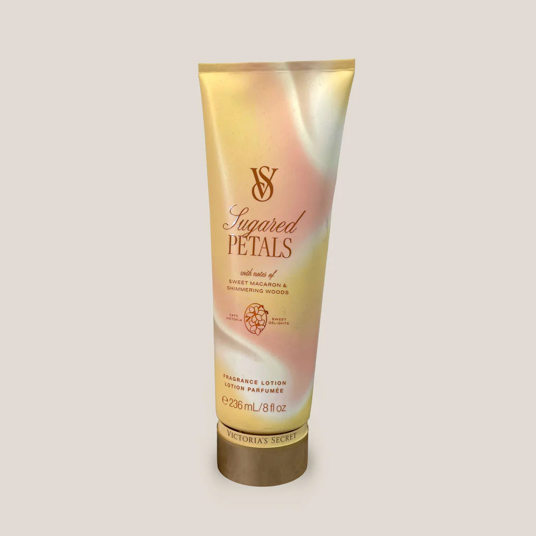 Crema con pétalos florales y azúcar. Hidratación intensa con un aroma dulce, delicado y femenino.